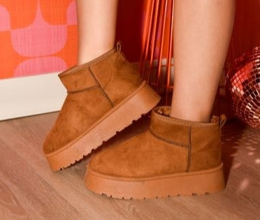 Slip into the coziness of these Faux-Fur Platform Booties in chestnut. The faux fur lining will keep your feet warm and comfortable all day long while the easy slip-on design makes them convenient to wear. Perfect for adding a touch of warmth and style to any outfit.